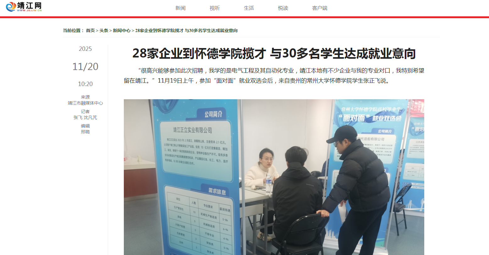 “很高兴能够参加此次招聘,我学的是电气工程及其自动化专业,靖江本地有不少企业与我的专业对口,我特别希望留在靖江。”11月19日上午,参加“面对面”就业双选会后,来自贵州的常州大学怀德学院学生张正飞说。