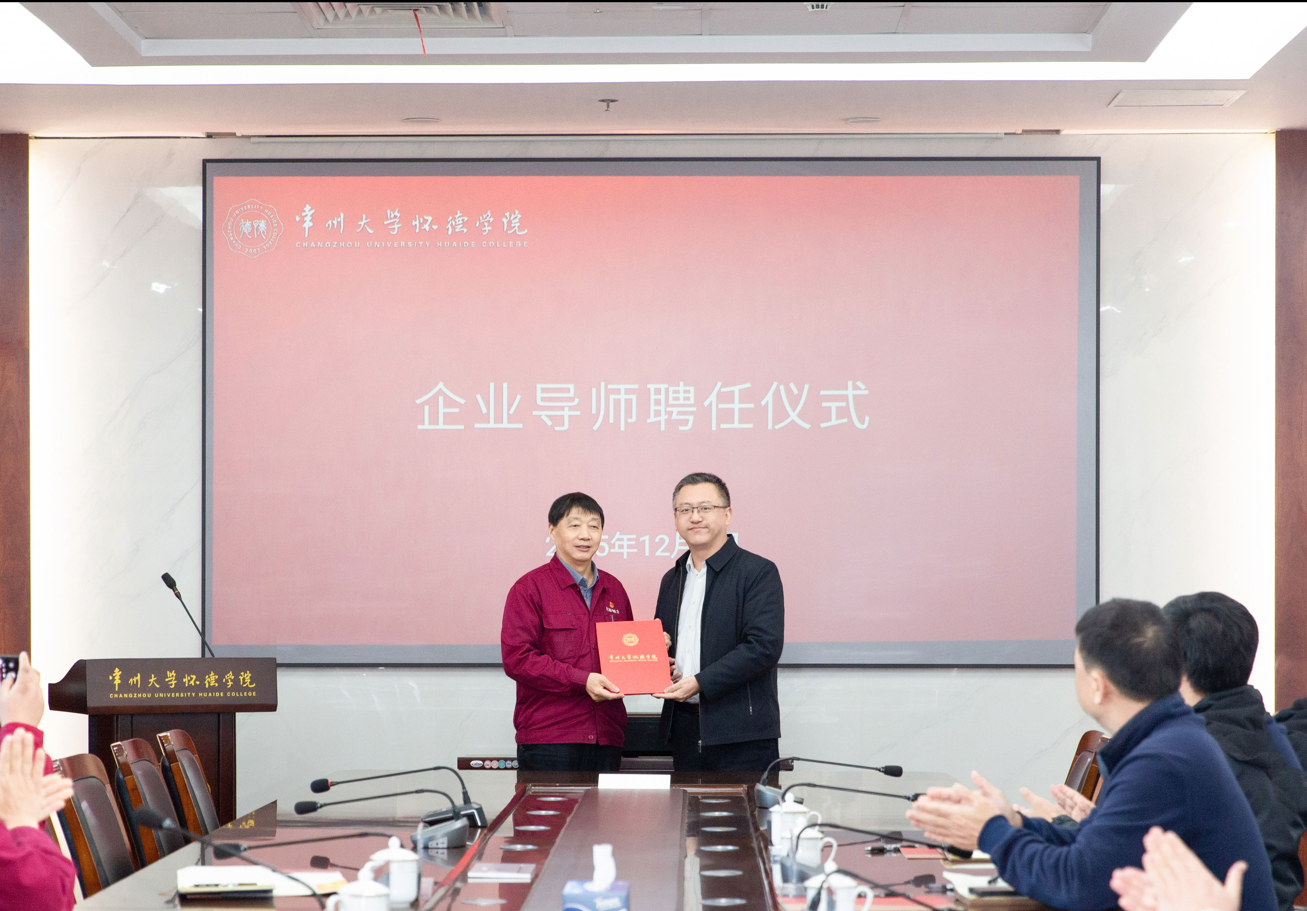 为充分发挥企业专家在人才培养中的实践指导作用,学院专门聘请了江苏恒力制动器制造有限公司相关行业专家担任学生企业导师。何岩峰为受聘导师颁发聘任证书。