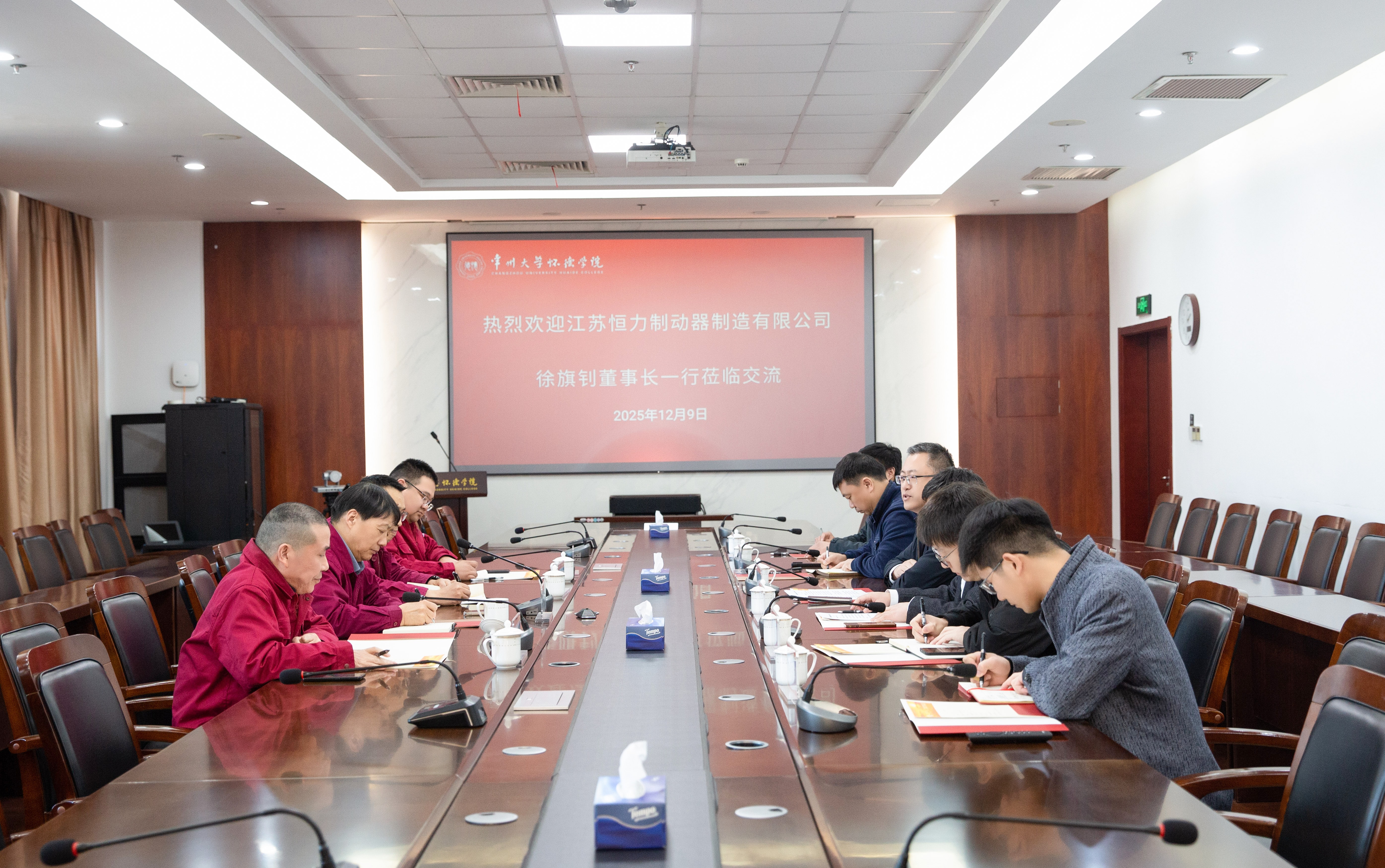 12 月 9 日,江苏恒力制动器制造有限公司董事长徐旗钊一行莅临我院,就深化校企合作、推进产学研融合开展交流洽谈。院长何岩峰、副院长王社国、院长助理章诚出席会议,相关部门负责人参加会议。会议由王社国主持。