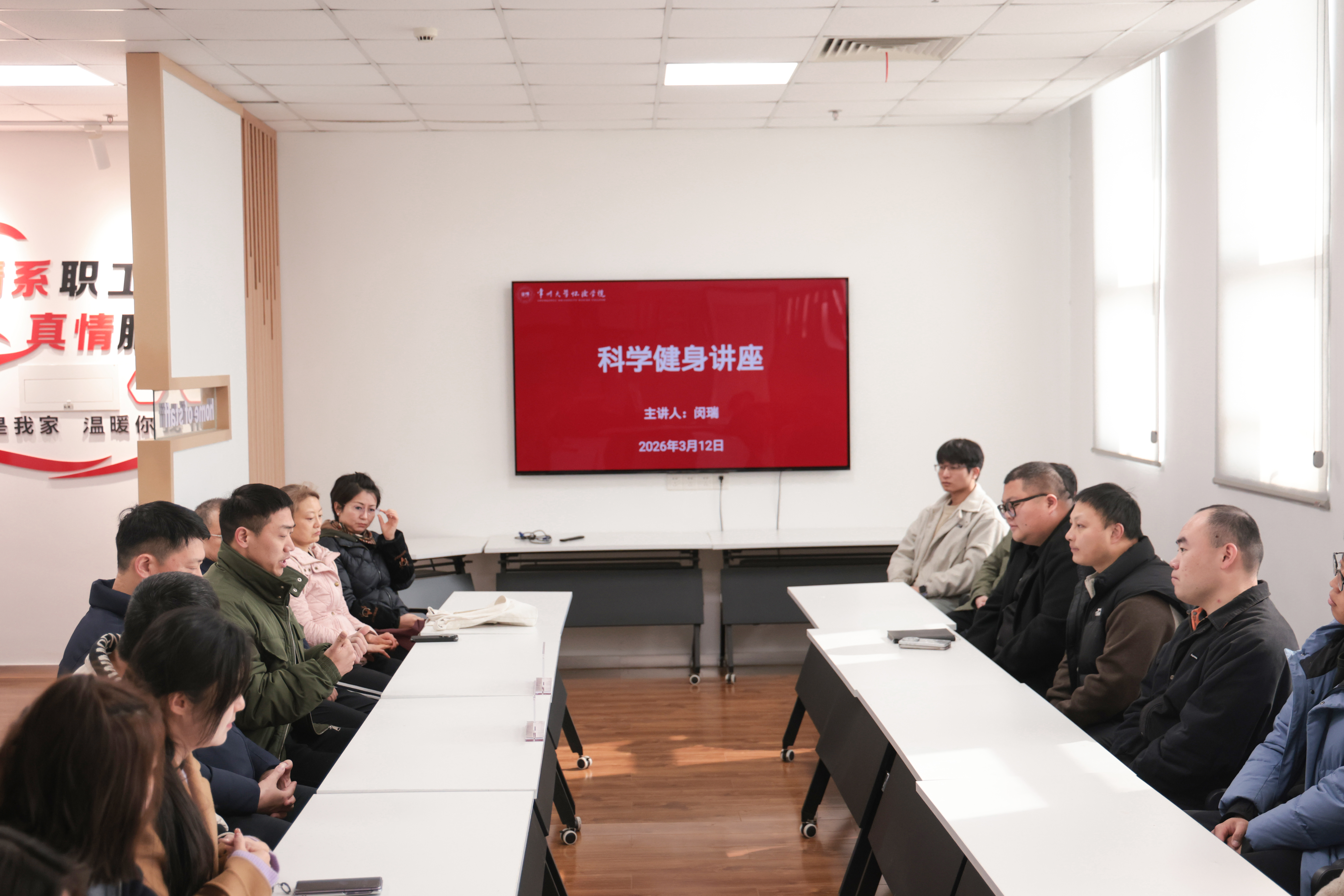 为倡导健康生活理念,普及科学健身知识,引导广大教职工养成良好运动习惯,3月12日,由学院工会主办的“科学健身强体魄 活力赋能促发展”主题健身讲座在工会之家顺利开展。院长助理陆泉名出席活动,专业健身教练闵瑞受邀担任主讲,全院各部门教职工踊跃参与,共赴一场健康与活力之约。