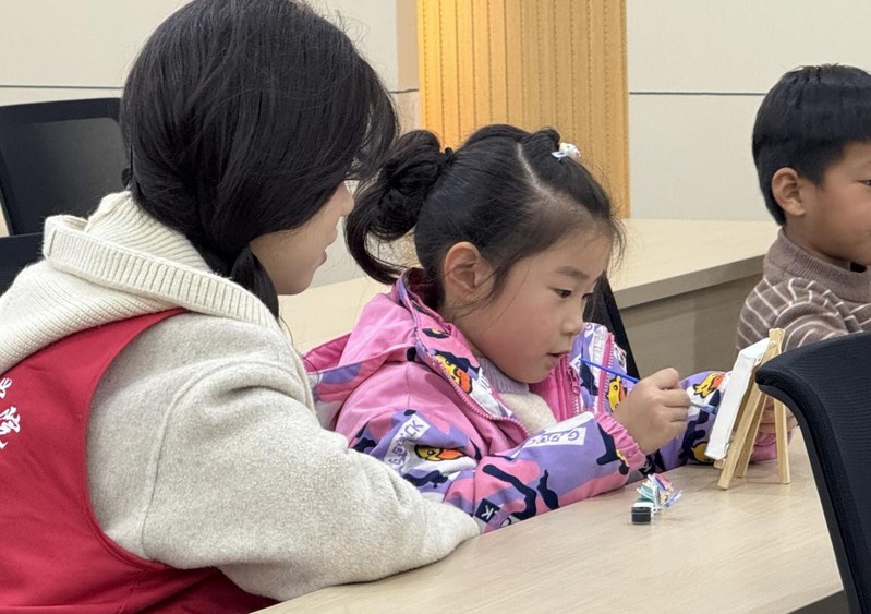 活动现场,志愿者们分工协作、井然有序。一部分志愿者化身课后辅导老师,耐心细致地为孩子们解答语文、数学等学科中的疑难问题,帮助理清解题思路、巩固课堂所学,助力孩子们高效完成周末作业。另一部分志愿者则结合艺术专业特色,组织开展了趣味绘画活动。他们提前备好画笔、画纸等材料,悉心指导孩子们勾勒线条、搭配色彩,鼓励大家大胆想象、自由创作。志愿者们始终面带微笑、用心陪伴,细心关注每一位孩子的情绪与需求,现场氛围温馨热烈。