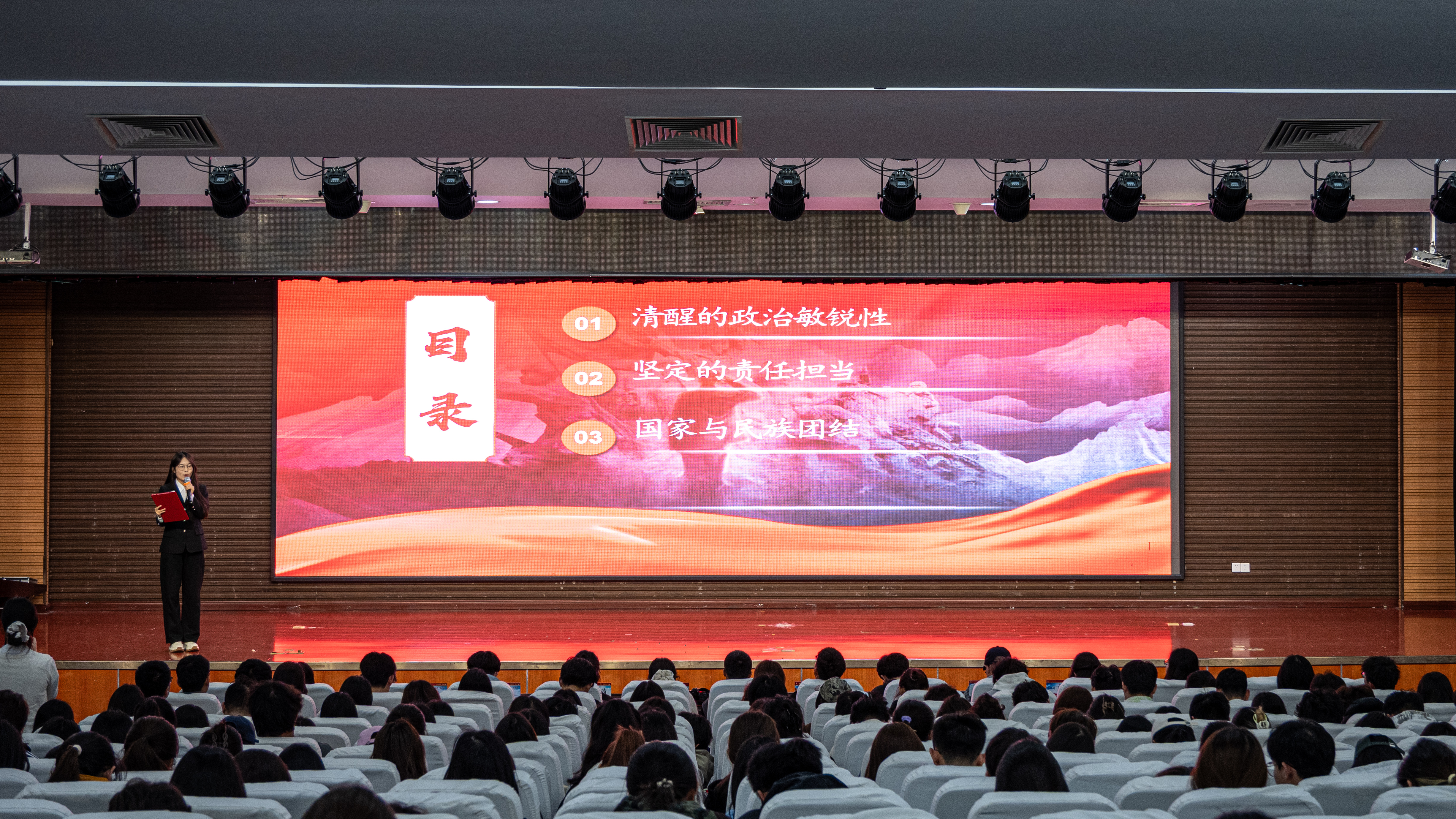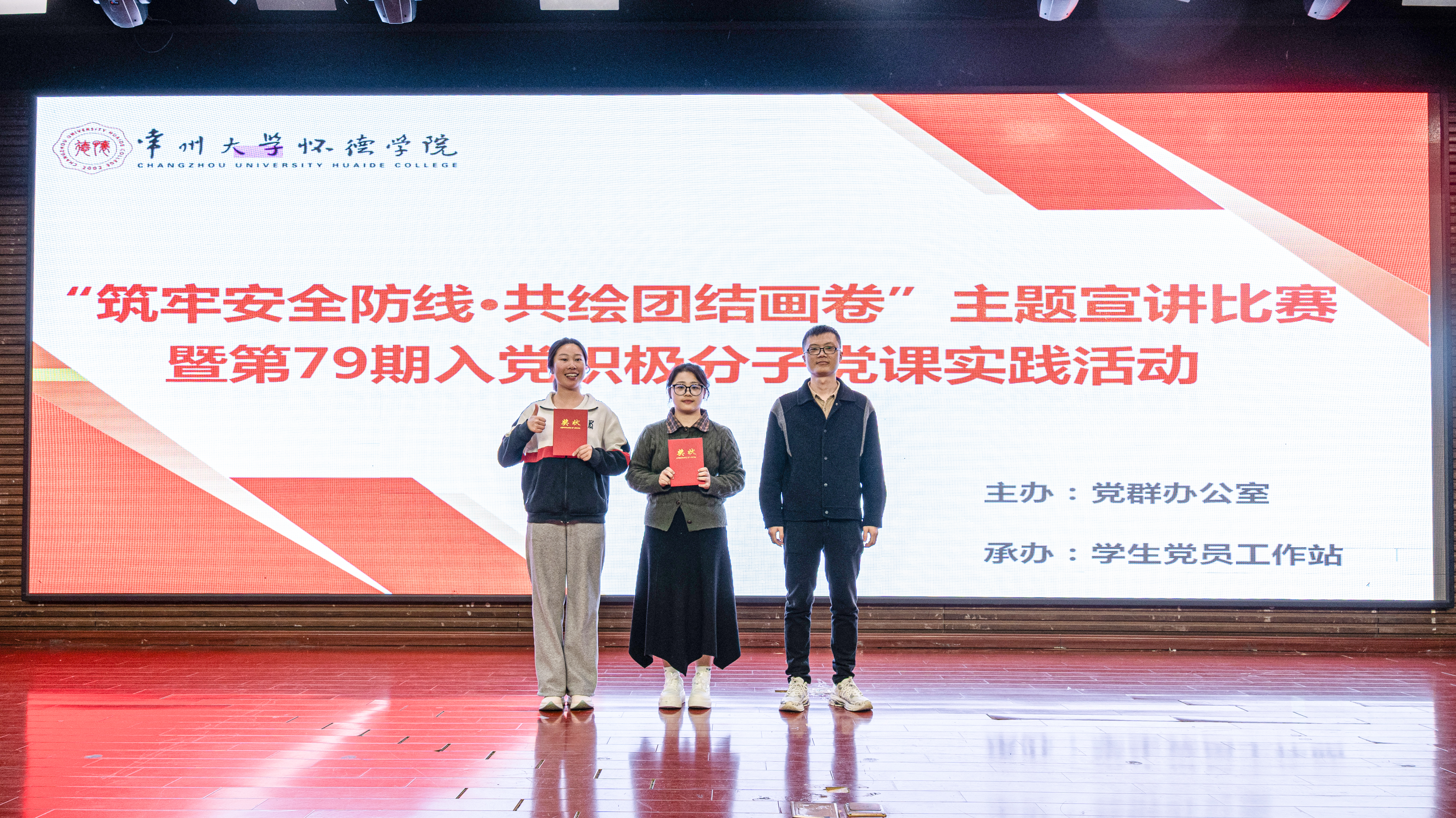 4月15日,“筑牢安全防线・共绘团结画卷”主题宣讲比赛暨第79期入党积极分子党课实践活动在怀德楼报告厅成功举办。本次活动由党群办公室主办、学生党员工作站承办,450余名入党积极分子参加。