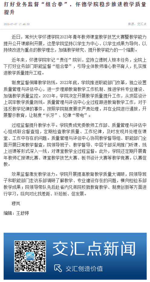 【交汇点新闻】打好业务监督“组合拳”,怀德学院稳步推进教学质量提升