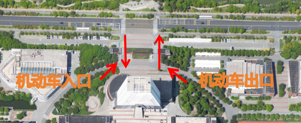 2.出口设置:所有驶出北门的机动车统一由东侧大门驶出。