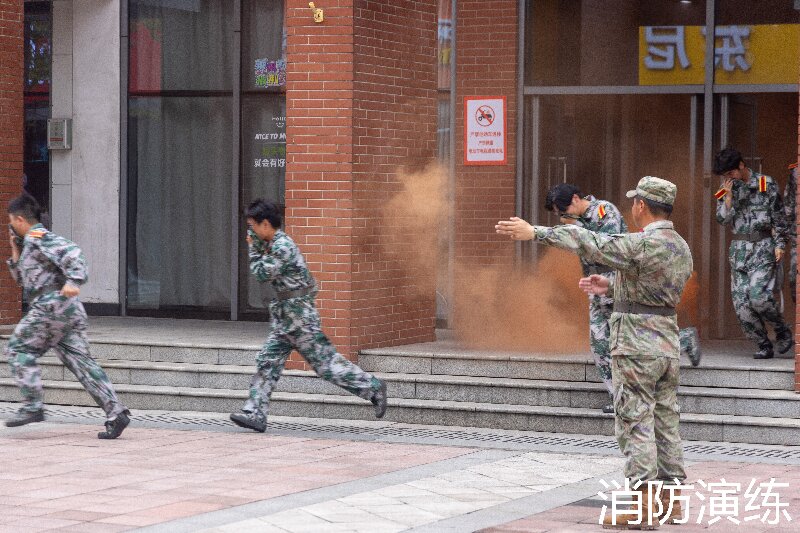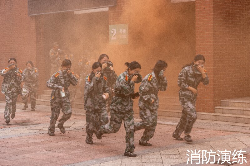 应急疏散演练环节,消防教官通过释放烟雾弹来模拟学生宿舍楼发生火情,在楼层工作人员的引导下,参演学生迅速反应,捂住口鼻,弯腰低姿,沿着就近的安全通道有序撤离。整个演练过程井然有序,短短几分钟,全部人员疏散至安全区域。