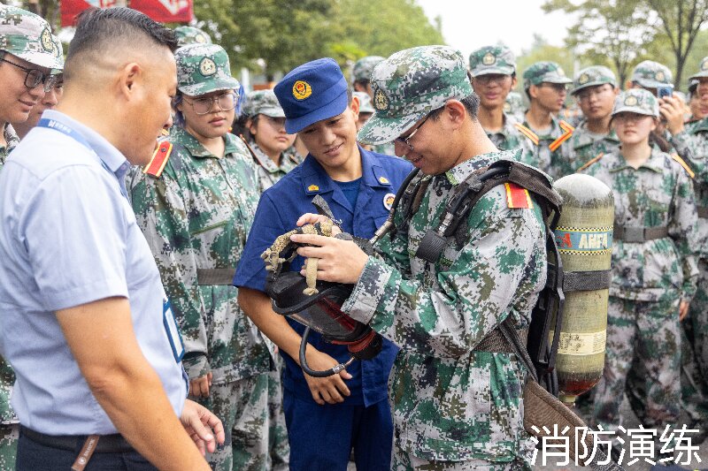 为切实增强新生消防安全意识,提高火灾突发事件应急处置能力,9月26日,安全保卫处、人武部联合靖江市新港城专职消防救援站组织开展2025级新生“消防安全进军训”主题活动,通过理论讲解与实战演练相结合的方式,为新生上好消防安全“第一课”。