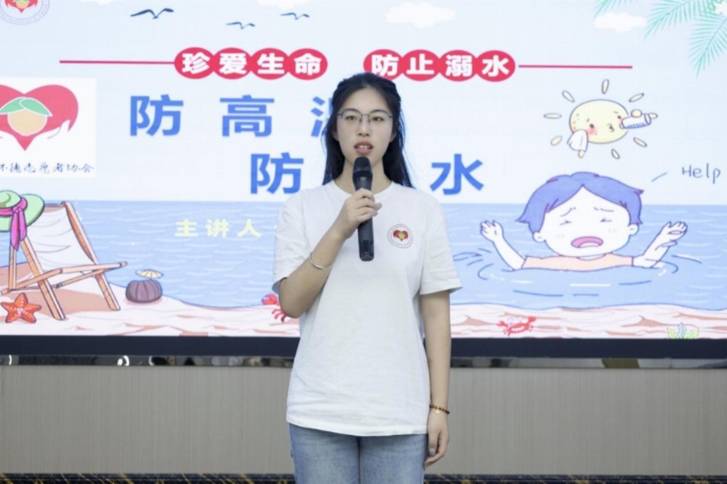 在随后的防溺水讲解部分,杨舒涵以互动环节切入,通过运用乡村水域实景图片和真实案例视频,生动讲解防溺水知识,使孩子们在情境模拟下掌握正确的自救互救方法。