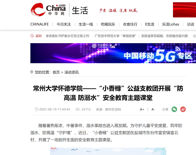 随着暑热渐浓,中暑事件、溺水事故也进入高发期。为守护儿童平安度夏,筑牢防溺水、防高温“守护墙”,近日,“小香橼”公益支教团在盐城市东台市富安镇富北村,开展了一场别开生面的安全教育主题课堂。