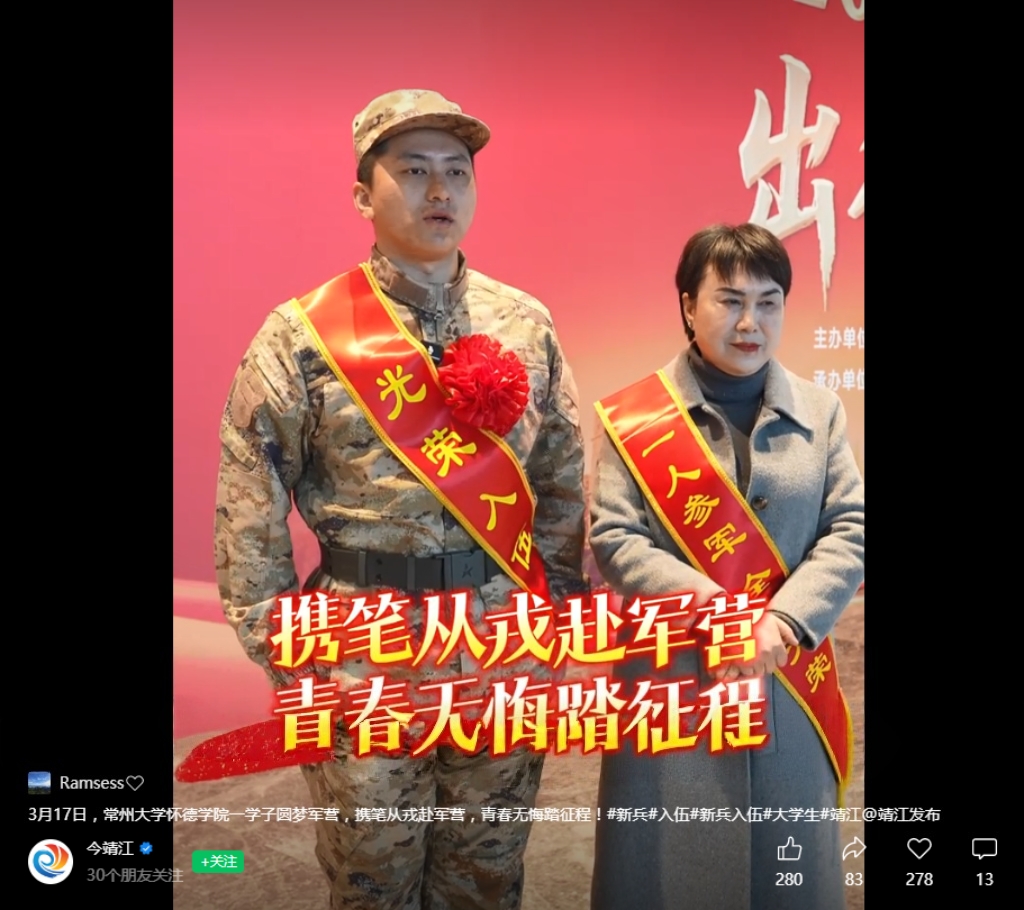 【今靖江视频号】怀德学子圆梦军营,投笔从戎