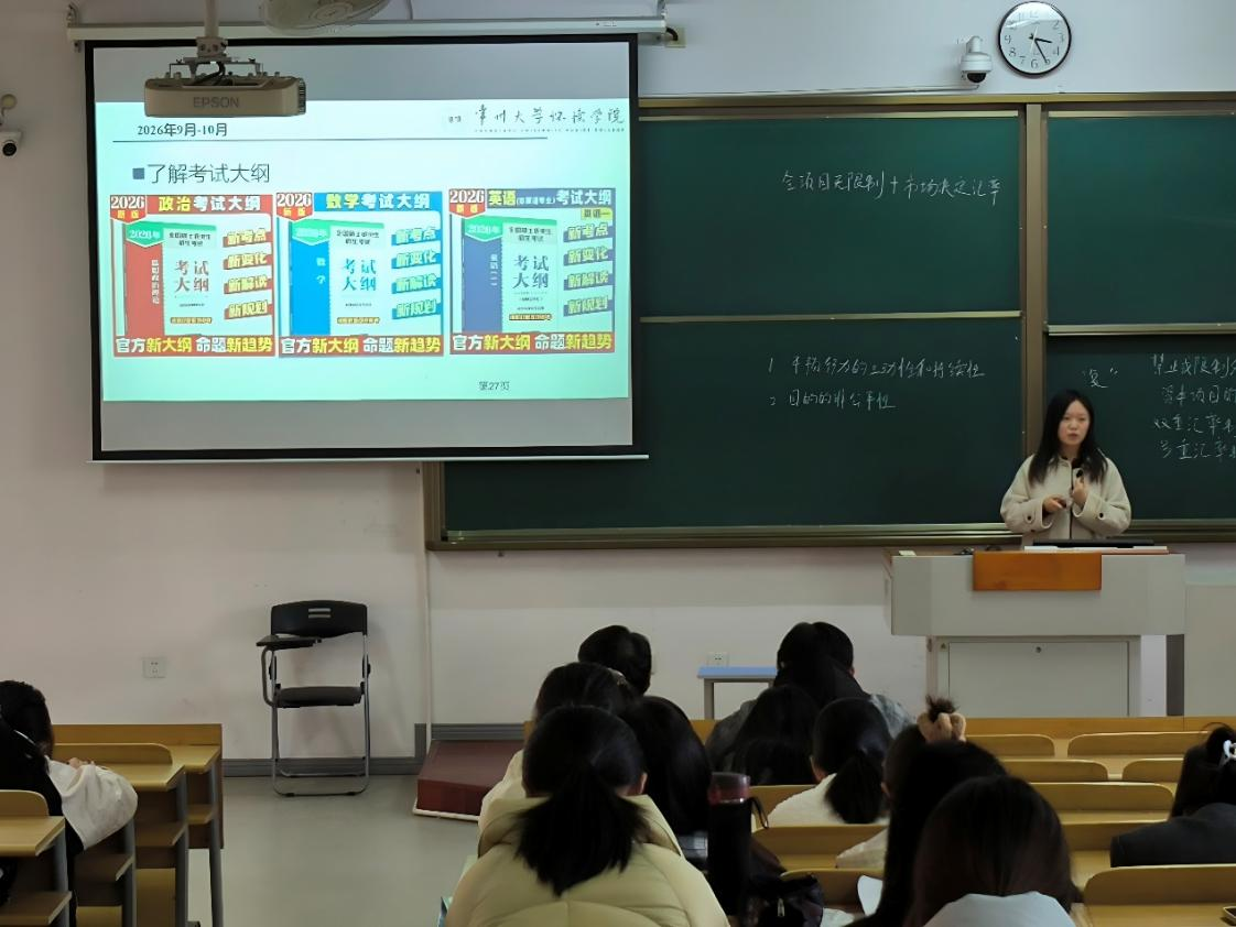 为帮助同学们明确考研备考路径,掌握科学有效的备考方法。11月28日,经济管理系于A楼教室成功开展考研动员会,动员会由2023级辅导员主讲,2023级学生积极参加。