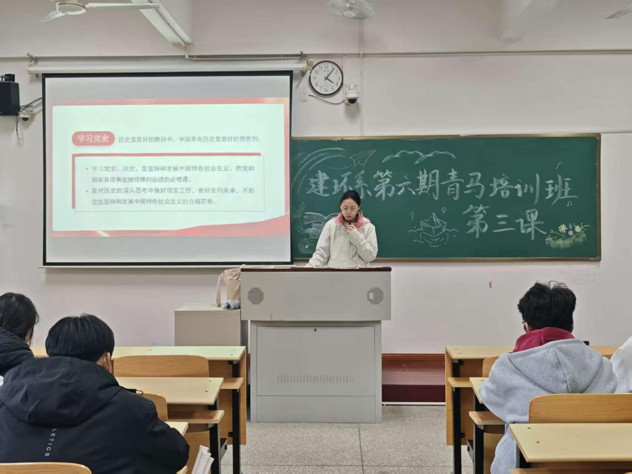 为弘扬伟大建党精神,激发青马学员青春磅礴力量,11月21日,建环系青马工程培训第三讲课程于A101顺利开展。本次会议由建环系团总支副书记陈雨玲主持,建环系全体青马学员参与。