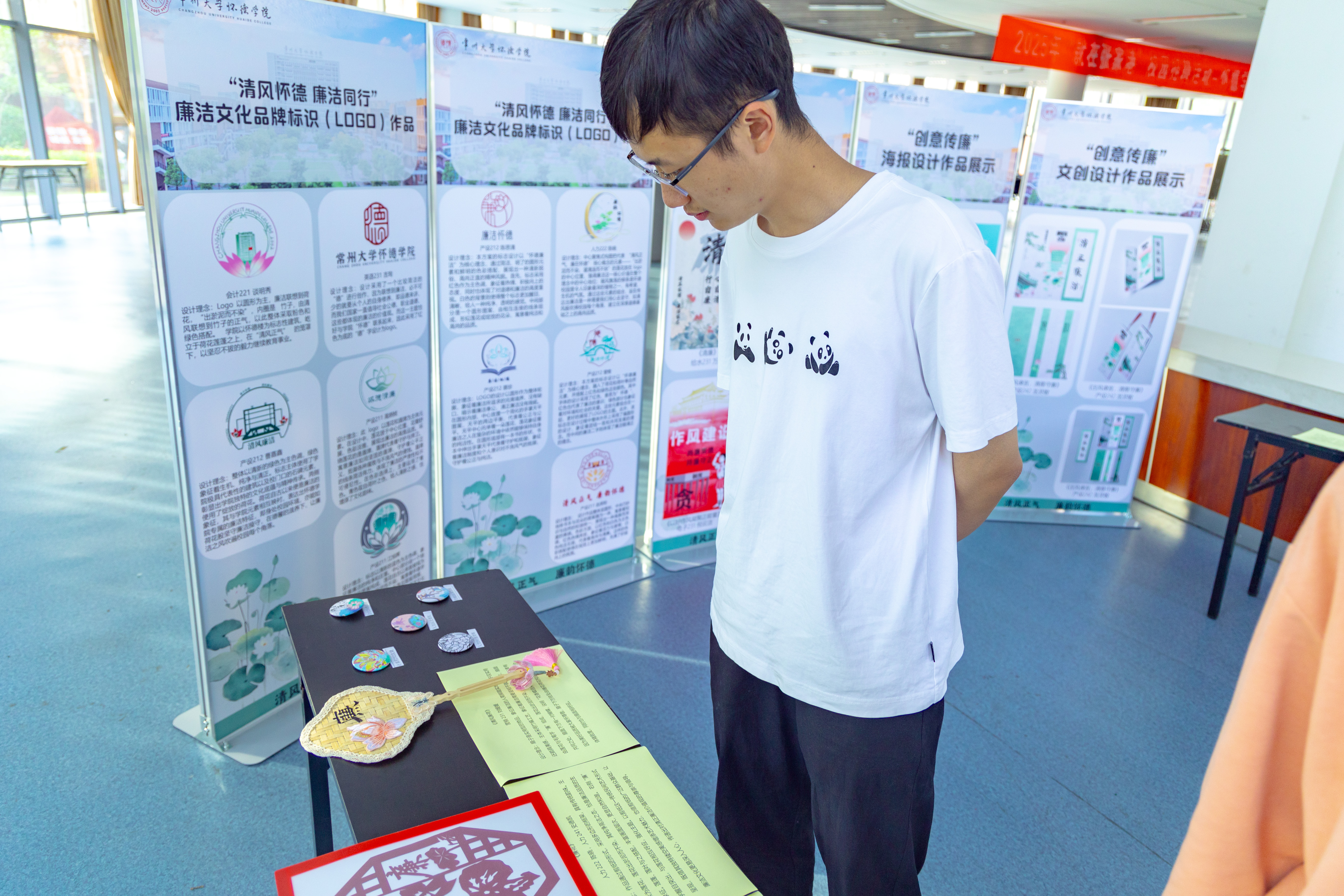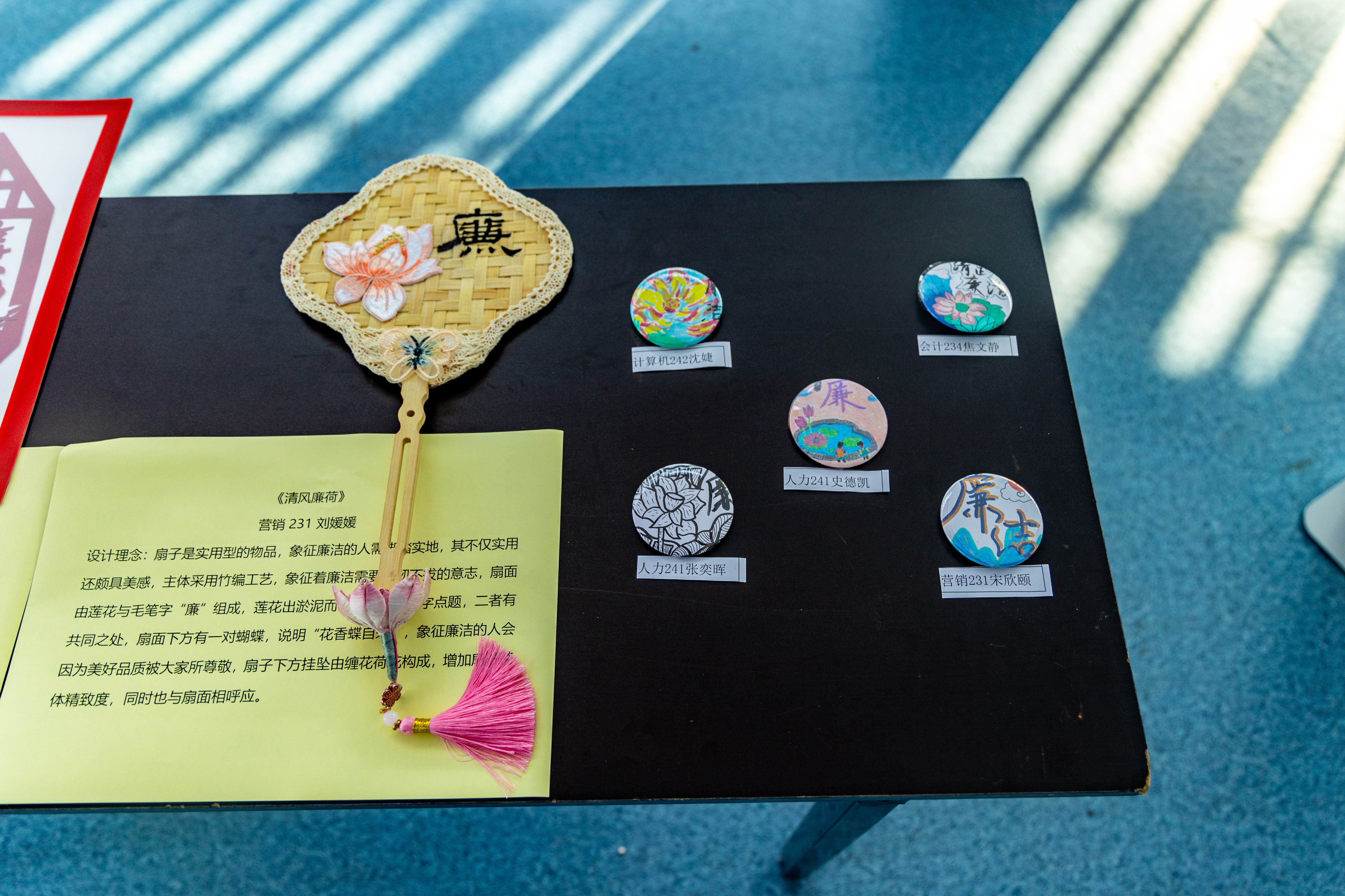 展厅现场,一幅幅精美的设计作品、一件件富有创意的手工艺品依次陈列,它们或意境深远,或寓意深刻,或风格独特,体现了师生们对廉洁文化的充分理解和真挚情感。