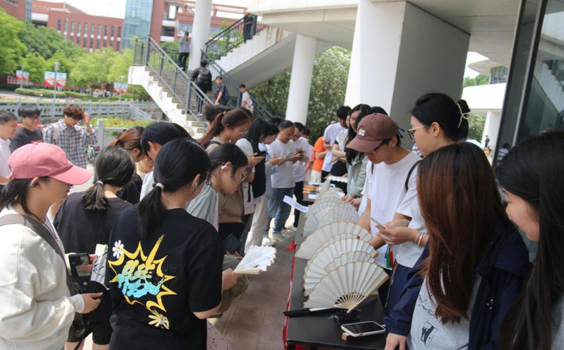 近日,艺术系在一食堂门前举办了一场别开生面的廉洁教育活动。活动以廉洁知识问答赢折扇为主题,吸引了众多师生热情参与。