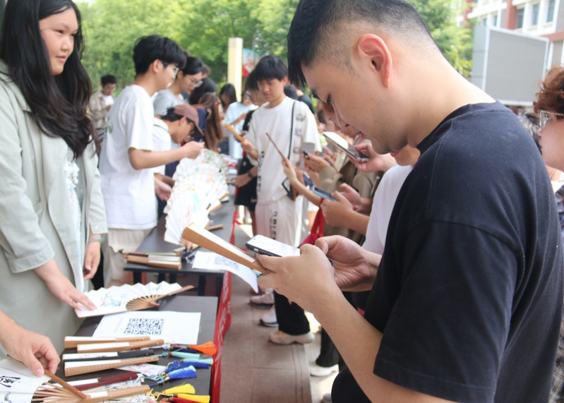 活动现场设置了廉洁知识问答环节,师生们通过扫描二维码参与党纪法规和廉政知识答题。答对题目的参与者可获得空白折扇,并在现场进行创作。师生们将廉洁奉公清正廉明等廉洁主题词句与水墨画巧妙结合,创作出一幅幅独具匠心的廉洁主题扇面。活动现场墨香四溢,参与者或凝神构思,或交流心得,在艺术创作中深化了对廉洁文化的理解。