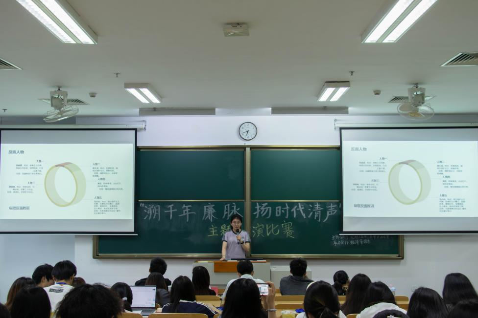 比赛伊始,主持人详细讲述了比赛规则与评分标准,并介绍了参赛选手及评委。随后,紧张且精彩的展演环节正式拉开帷幕。选手们围绕主题,各展所长,有的深情讲述历史长河中廉吏的动人故事,有的生动演绎现代社会里的廉洁典范事迹,有的巧妙地融入了热播剧《人民的名义》中的经典元素,从反腐败角度讲述廉洁。他们灵活运用精心制作的PPT、丰富的视频资料等辅助手段,清晰有力地阐述着对廉洁文化的深刻理解,使展演内容更加鲜活立体。经过激烈的角逐,杨舒涵获一等奖,蒙亭欢、孙诗睿、陈庆获二等奖,朱轩奇、周晓迪、王雯、徐涵获三等奖。