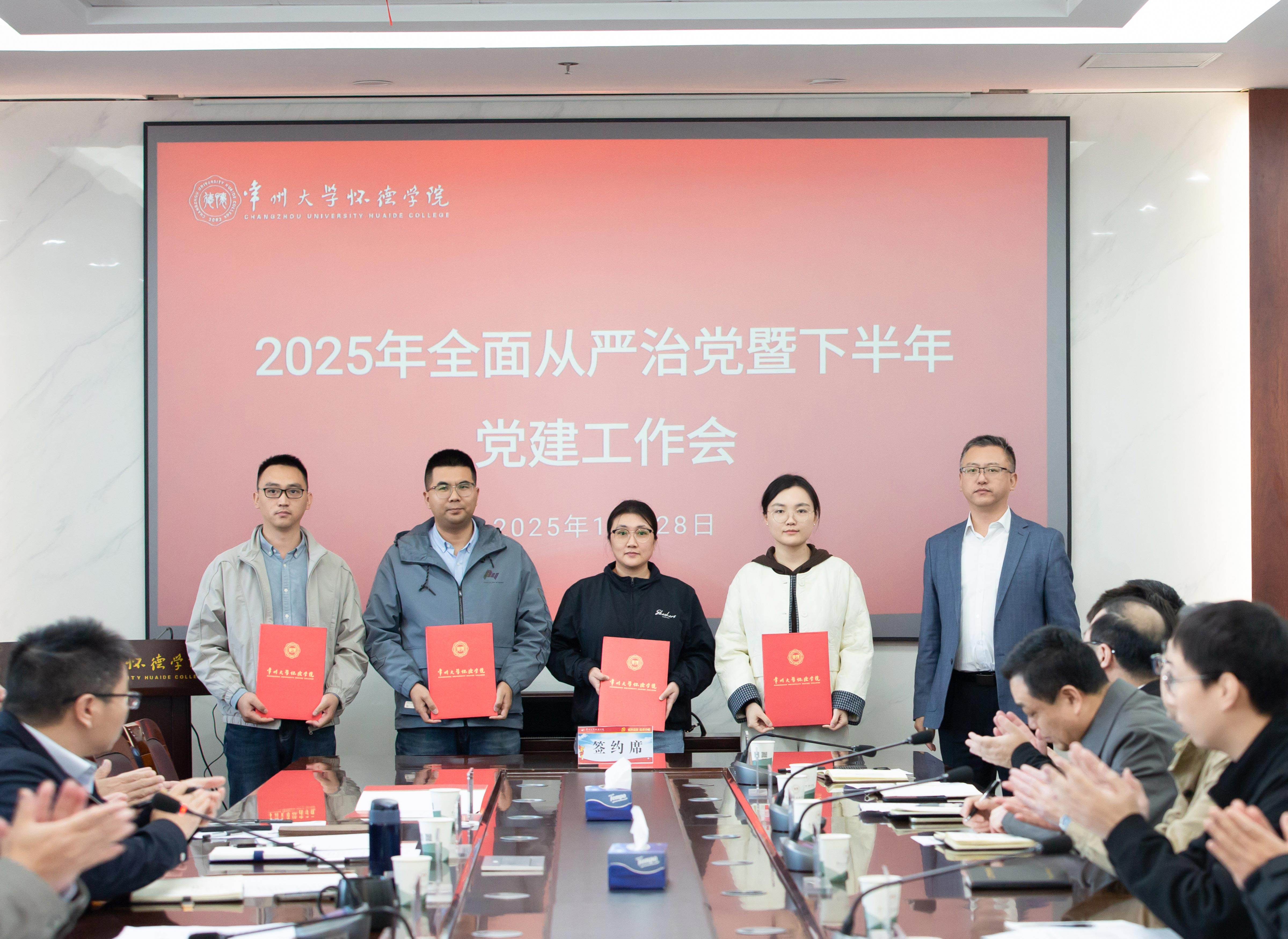 会上,院党委书记李伟明与各党总支、直属党支部书记签订《全面从严治党责任书》;何岩峰为党风廉政监督员发放聘书。