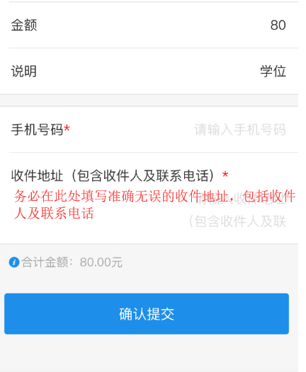4.在确认提交之前务必填写好准确无误的收件地址(包括收件人和联系电话)。