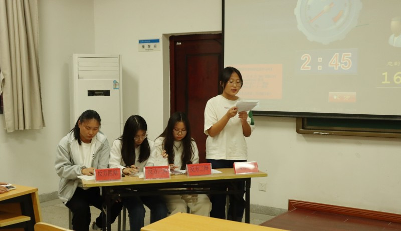 本次比赛由“介绍”、“开篇立论”、“双方对辩”、“自由辩论”、“总结陈词”、“评委点评”六个环节组成。十一支队伍两两进行辩论。辩论过程中,双方辩手从容不迫,条理清晰,才思敏捷,现场气氛迅速升温,精彩不停,掌声不断。各位评委也针对参赛队伍在辩论过程中出现的问题给予专业上的指导与建议。