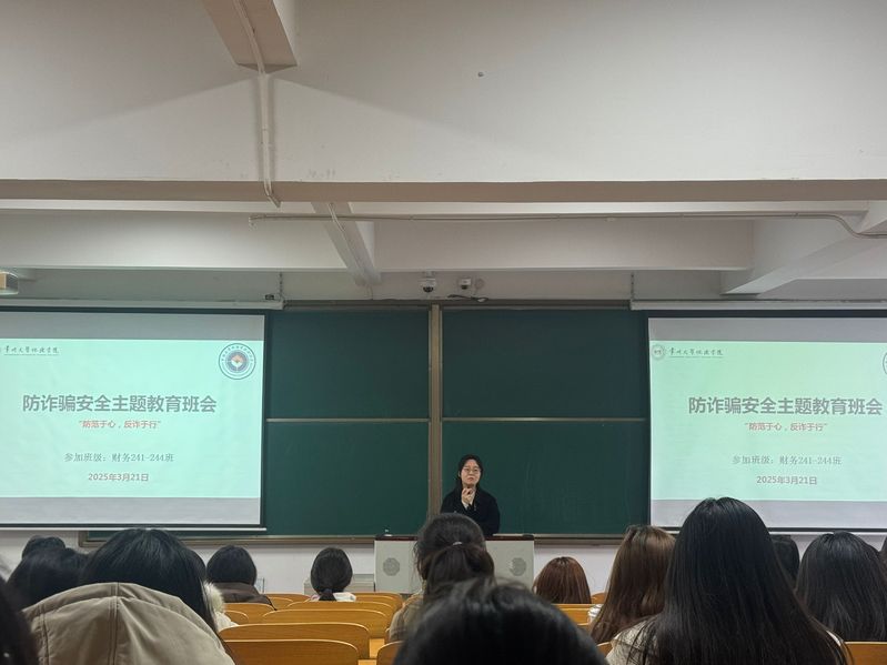 为增强学生防范电信网络诈骗意识,提升安全风险应对能力,会计系于2025年3月组织全系班级开展反诈安全主题班会活动。本次活动以“筑牢反诈防线守护校园安全”为主题,辅导员通过数据分析、情景模拟、案例剖析等形式,为学生带来了一堂深刻的安全教育课。