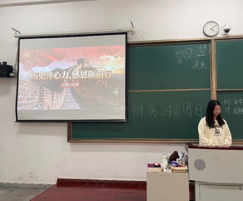 为了引导同学们回溯历史根脉、汲取信仰养分,将感恩之心化为前行之力,财务242班于11月12日在A楼开展了“历史淬心力,感恩砺前行”主题信仰公开课。