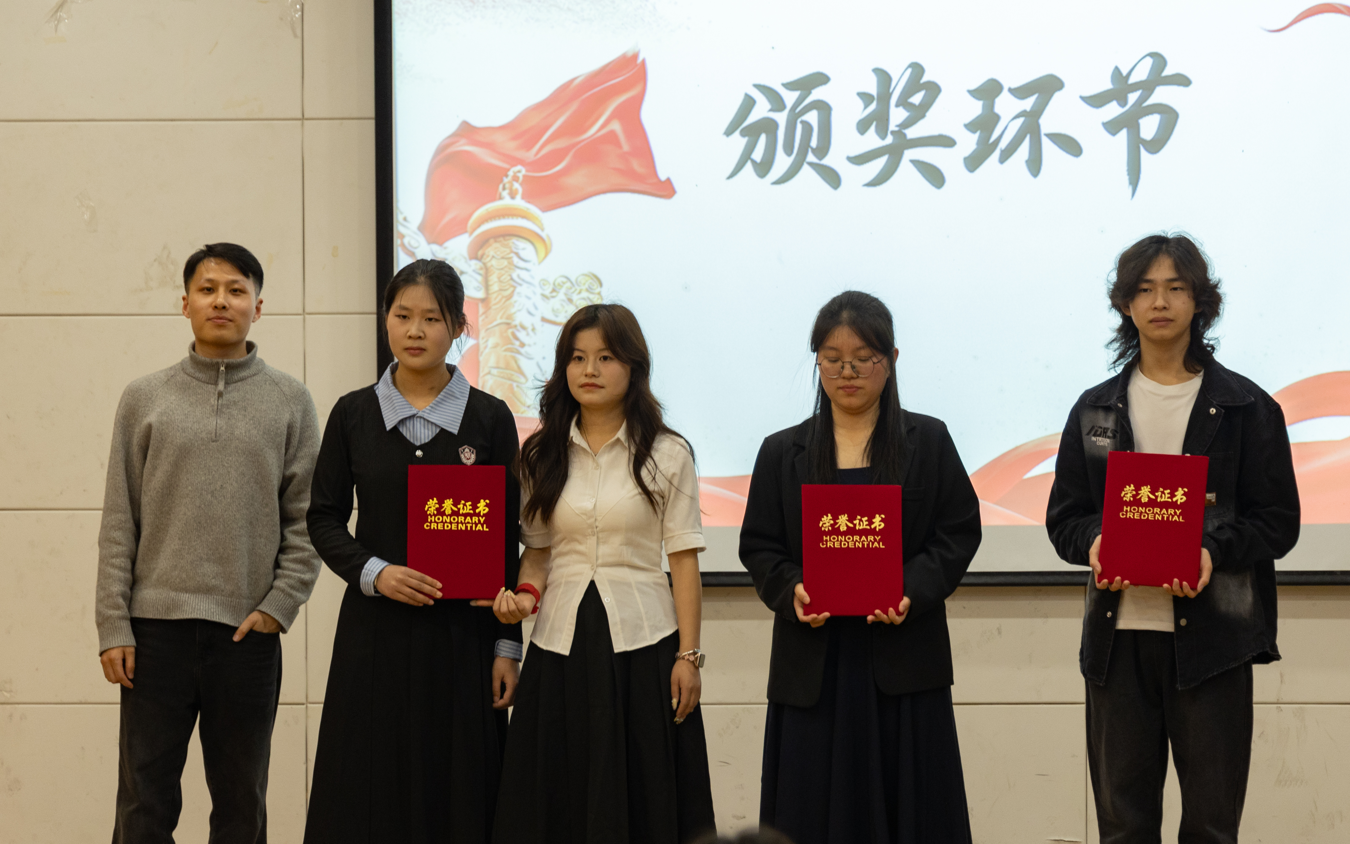 为增强阅读与表达中的文化认同感,激发怀德学子对历史与时代发展的思考,我院与4月15日在大学生活动中心多功能厅举办了“听时代之声,忆峥嵘岁月”常州大学怀德学院第四届朗读者比赛,本次活动由共青团常州大学怀德学院委员会主办,大学生活动中心自我管理委员会承办,团学指导老师涂隽可、王杨一可和孙承煜担任评委,全院同学积极参加。 本次活动分为初赛与决赛两个环节,初赛采取线上投稿方式,经评委评选,共9组同学晋级决赛。决赛选手需结合视频配乐进行脱稿或半脱稿朗诵,评委分别从仪态、内容、表达、创意方面进行评分,最终角逐一、二、三等奖以及优秀奖。其中,张慧恩同学凭借对朗诵作品《祖国啊,我亲爱的祖国》的深刻理解,运用精湛的朗读技巧,以饱满真挚的情感完成演绎,最终荣获本次决赛第一名。 此次活动通过朗诵经典作品与时代主题文章,引导同学们在声音与文字中回顾历史、感悟时代精神,进一步增强青年学子对国家发展历程和优秀传统文化的认识与理解。(通讯员/王杨一可 审核/谷灵莉)