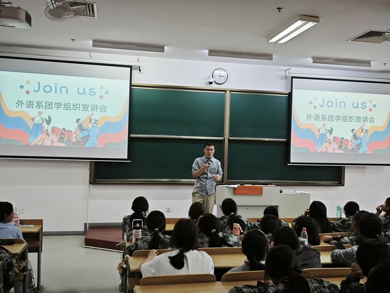 为帮助2025级新生了解系部学生组织,9月24日下午,外语系于J201开展团学组织介绍会。外语系团总支书记高辉、团学各部门主席团成员及2025级全体新生参加了此次活动,活动由外语系志愿团团长李思佳主持。