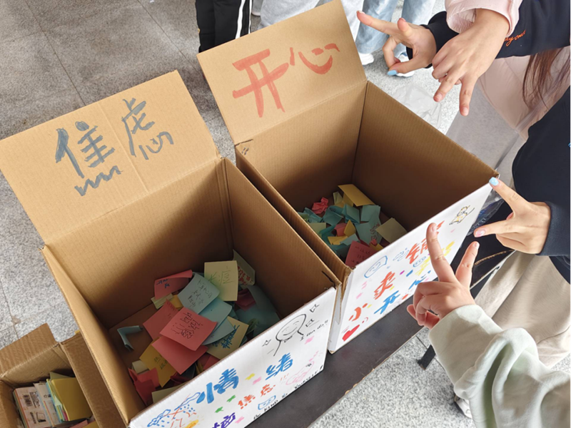 活动以“投递情绪、治愈同行”为核心,鼓励同学们匿名写下近期生活中的欢喜和烦恼,分别投入“开心能量箱”与“解忧杂货箱”,同时可抽取他人的情绪信件完成暖心回应。同学们踊跃参与,在文字中完成与自我对话、与同伴共情,用温柔的笔触传递自己的力量。活动现场还设置了治愈小礼品和心理知识卡片领取环节,让大家在收获情绪价值的同时学习到更多关于情绪调节的实用方法。