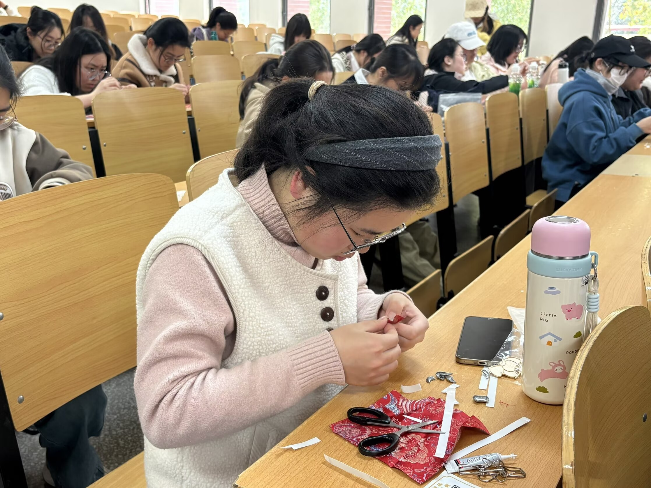为贯彻落实《省教育厅关于常态化开展“五育润心 沐光同行”心理健康教育活动》文件精神,帮助学生舒缓学业压力,丰富校园文化生活,327日下午,院心理自助中心A1阶梯教室举办了“寸锦寸心,古韵新作”宋锦DIY活动,百余名学子共同体验了这场手作的专注与治愈。