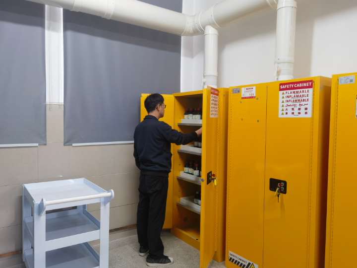 此前,各实验室已按照《高等学校实验室安全检查项目表(2024年)》的要求进行了自查。实验中心进行抽查实验室相关安全制度落实,并对危险化学品管理进行专项检查。要求各实验室管理人员要强化思想认识、增强责任意识,对安全隐患不能有任何侥幸心理,整改一定要及时、到位,要全方位扎实做好实验室安全工作。