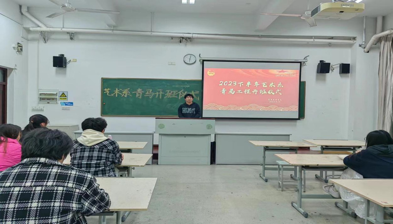 为深入学习贯彻党的二十大精神,培养锻造一批信仰坚定的青年马克思主义者,常州大学怀德学院艺术系于11月15日晚在B209举办“青马工程”开班仪式暨第一次课程培训。艺术系团总支书记帅博文、副书记吴晓萌、团学组织各部长、23级各班长和团支书以及艺术系新生骨干参加了本次活动。