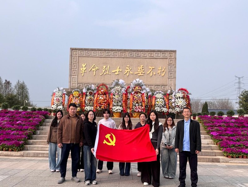 4月1日,艺术系教工党支部与学生党支部全体党员共同前往弯腰沟革命教育基地,联合开展清明祭英烈主题活动。