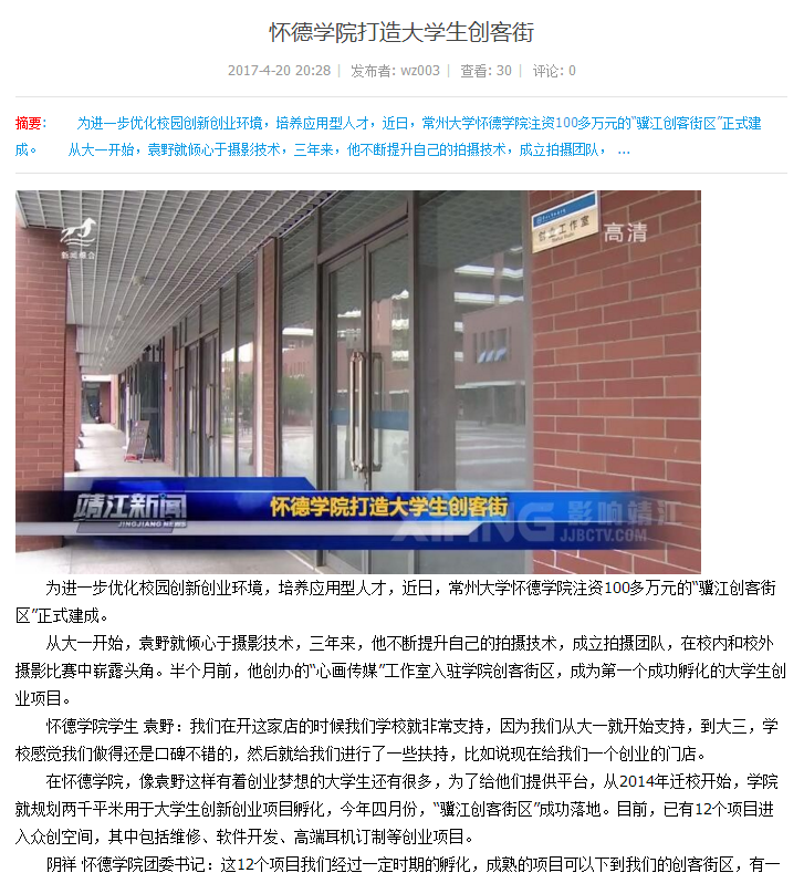 影响靖江:怀德学院打造大学生创客街