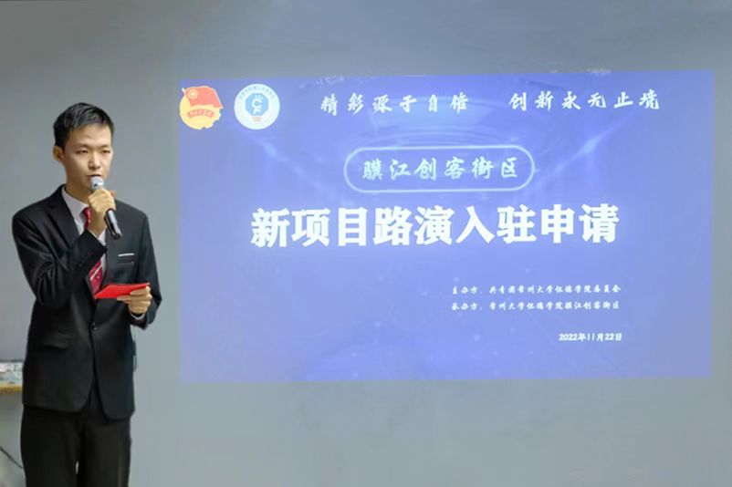 11月22日下午,骥江创客街区第八期创业项目路演暨创业项目入驻评审会顺利举办。机械与材料工程系党总支书记朱骥洪、艺术系党总支副书记司马亚琴、建筑与环境工程系党总支副书记唐杰、院团委副书记谷灵莉、院团委指导老师刘雅霖出席活动并担任评委。