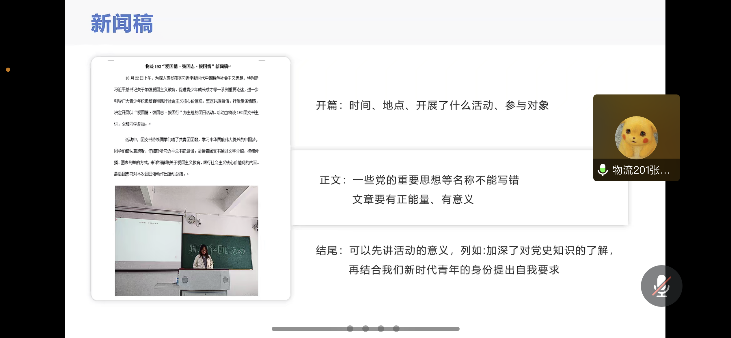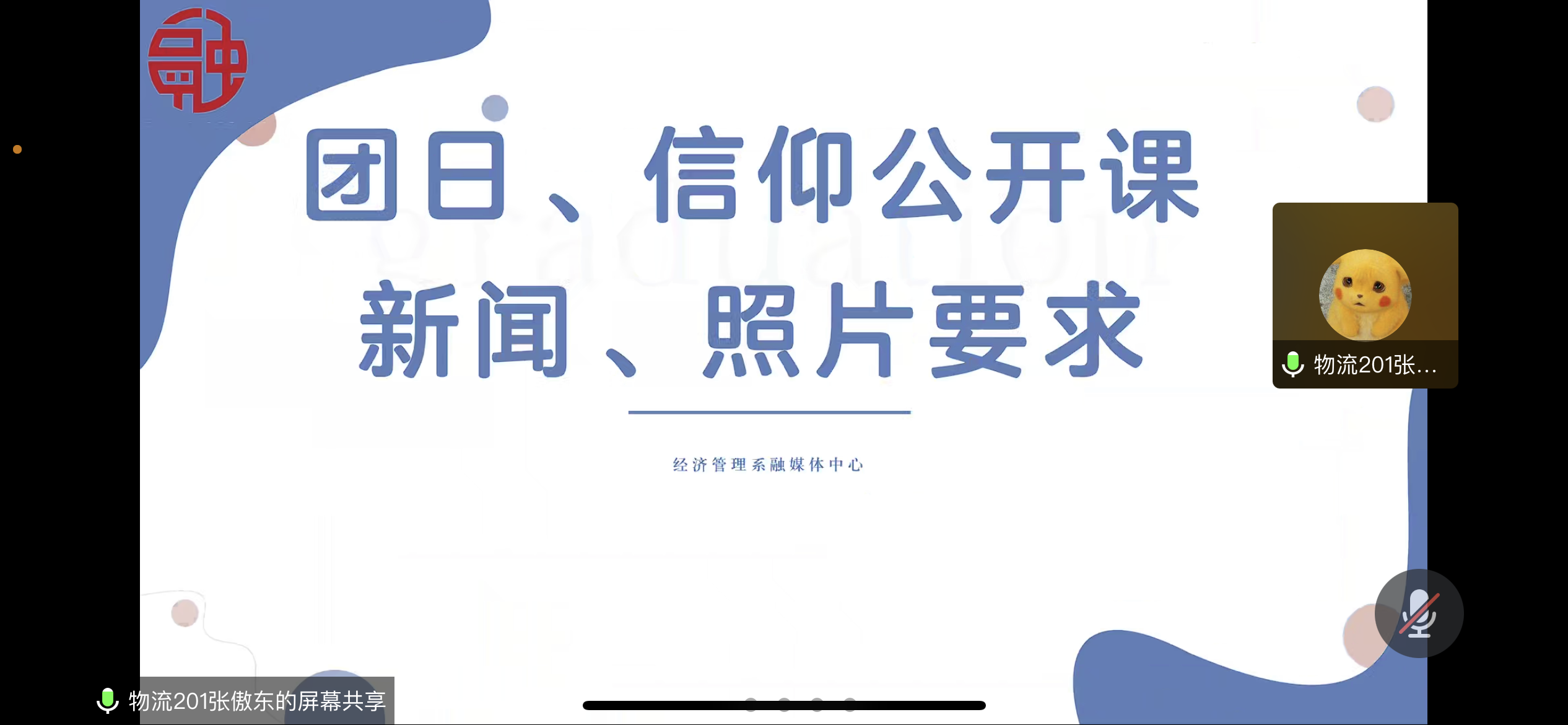 为规范大学生撰写新闻稿和拍摄照片的格式要求,11月24日晚,经济管理系于线上开展青年马克思主义者培养班第四讲“写好新闻,做好工作,提升自我”的专题讲座。本次讲座由经管系融媒体中心主席张傲东主讲,经管系各学生组织及22级班长、团支书参加。