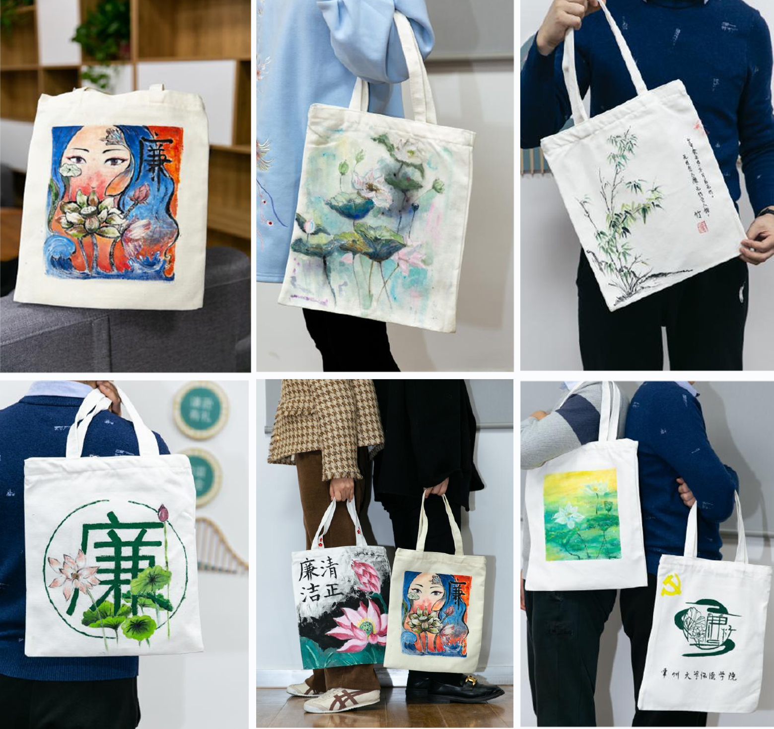 11月26日下午,大赛在南广场湖畔举行,共80支参赛团队沿着湖畔现场进行帆布袋图案绘制。绘制完成的作品中既有纯净清新、意境高远的自然景色,在画框里描绘出莲花、竹子,充满大家心目中对廉政文化的理解,也有漫画、诗词、廉政警句等表现内容,洋溢着浓浓的墨香和清廉之风。每一份作品都倾注了参赛选手的心血。