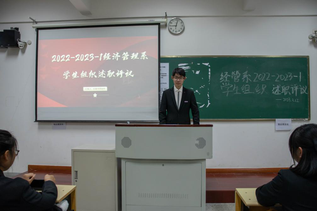为深入贯彻共青团中央、全国学联关于学生会组织改革的重要精神,推动经管系学生会组织从严治会,3月12日晚,经济管理系于A103举办了学生会2022-2023-1学期述职评议会议,经管系学生会主席团、部长团和各部门干事参加。