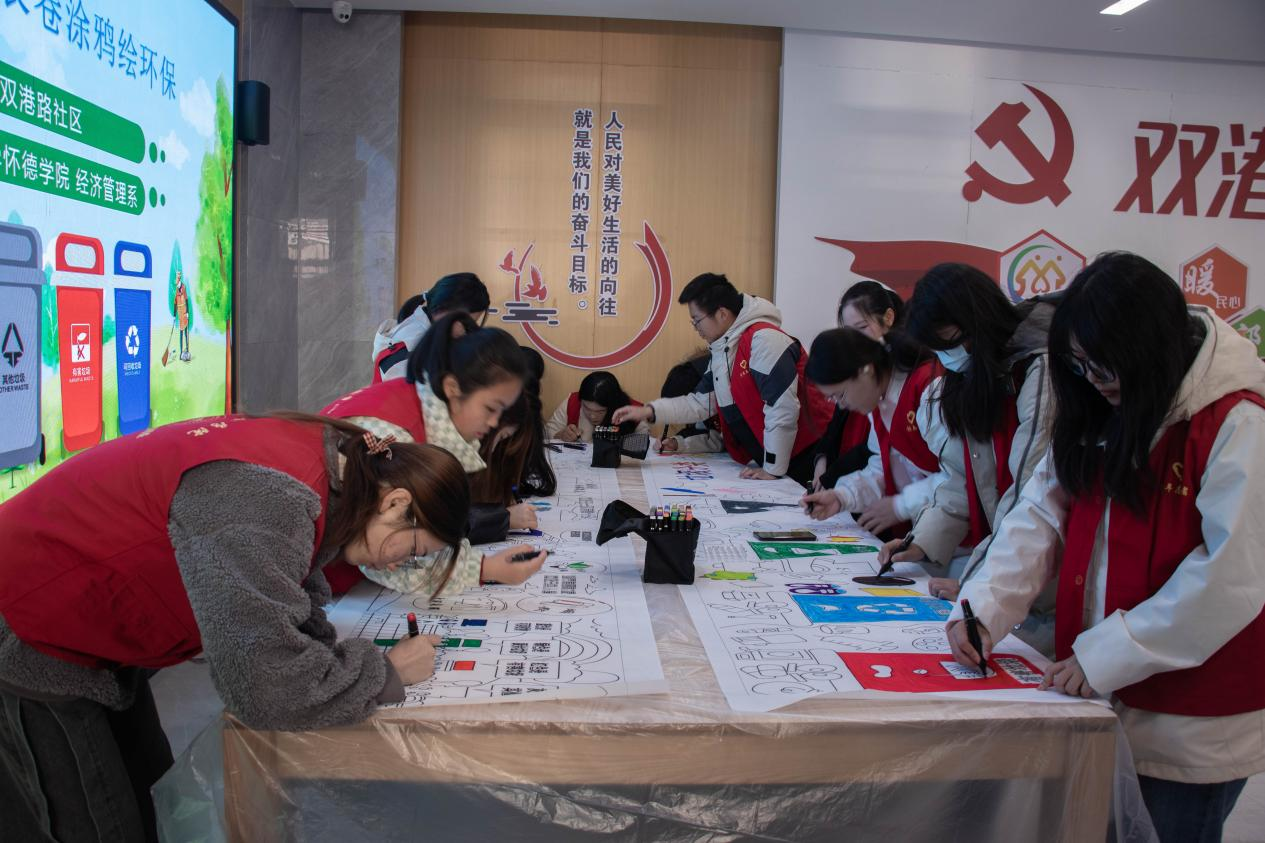 为推进垃圾分类工作持续开展,培养学子树立垃圾分类的意识。11月18日,经济管理系组织学生于双港路社区参加垃圾分类涂鸦活动,经管系学生志愿者积极参加。