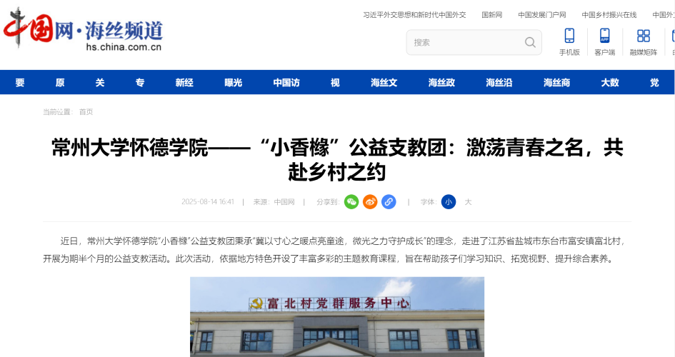 近日,常州大学怀德学院“小香橼”公益支教团秉承“冀以寸心之暖点亮童途,微光之力守护成长”的理念,走进了江苏省盐城市东台市富安镇富北村,开展为期半个月的公益支教活动。此次活动,依据地方特色开设了丰富多彩的主题教育课程,旨在帮助孩子们学习知识、拓宽视野、提升综合素养。