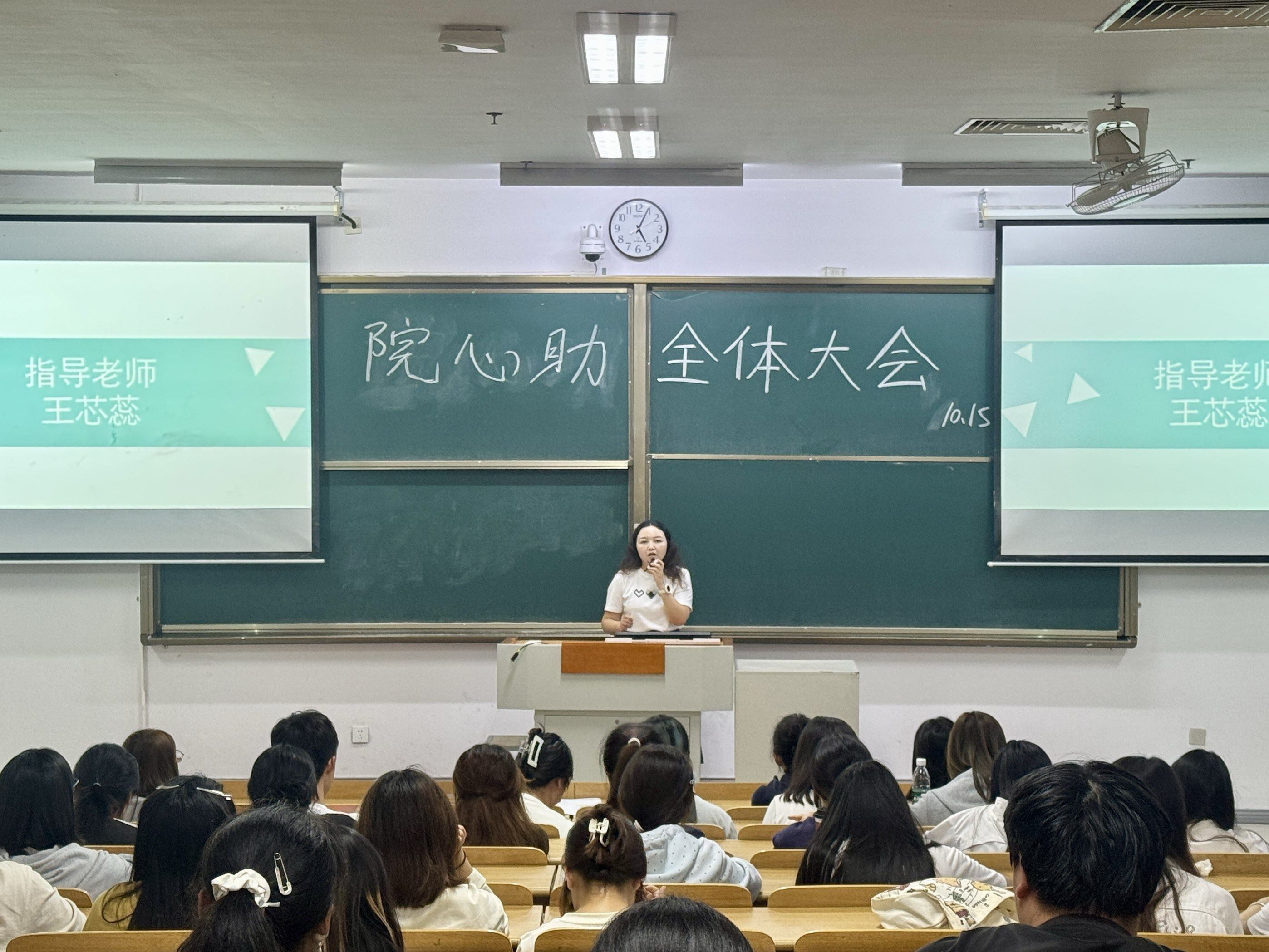 会议伊始,主席团与各部门部长依次发言,系统介绍了院心助的组织文化、部门职能以及往期特色活动,并本学期重点任务进行了规划与安排。指导老师王芯蕊作总结发言,她对新成员的加入表示诚挚欢迎,并强调心理服务工作应始终秉持“真诚、负责”的态度,勉励全体成员在协作中提升自我,携手全院学生的心理健康保驾护航。