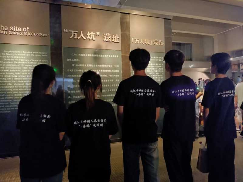 踏入纪念馆,庄严肃穆的氛围笼罩着全体成员。在讲解员的引领下,大家依次参观各展区:泛黄的历史照片、锈迹斑斑的文物、真实的影像资料,系统展现了1937年日军侵华背景、南京沦陷后的屠杀场景及幸存者口述实录,每处细节都令人心情沉重。“万人坑”遗址前,层层叠叠的白骨作为侵华日军暴行的铁证,让成员们深切体会到和平的来之不易。