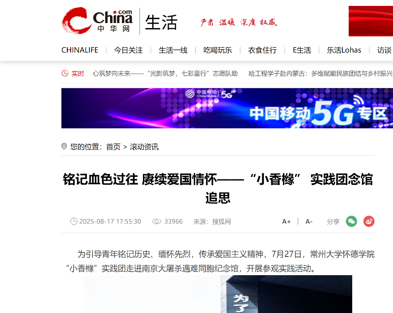 【中华网】铭记血色过往 赓续爱国情怀——“小香橼” 实践团念馆追思