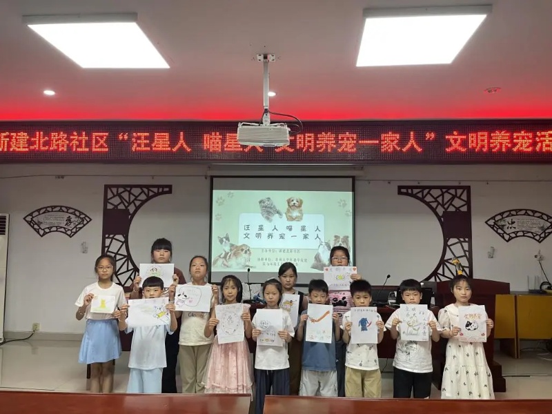 近日,常州大学怀德学院的大学生志愿者来到靖城街道新建北路社区,组织开展了一场“汪星人喵星人,文明养宠一家人!”主题实践活动。志愿者以轻松有趣的方式,详细讲解了文明养犬的要点。 志愿者还带领孩子们围绕“文明养宠,共建和谐社区”“爱宠不扰民,文明伴我行”等主题,用画笔描绘出遛狗牵绳、及时清理粪便、定期接种疫苗等文明养宠场景。社区居民朱敏养犬多年,她也是社区的文明养犬监督员,她坦言自己每天出门遛狗时,都会拉好牵引绳,并且随身携带拾便袋,以身作则引导他人践行文明。