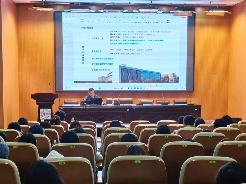 为帮助学生明晰考研方向与专业发展路径,10月20日,艺术系在图书馆报告厅举办硕士研究生招生宣讲会。活动特邀常州大学美术学院副院长贾韬担任主讲人,艺术系2022级、2023级学生到场聆听。会议由艺术系党总支书记司马亚琴主持。