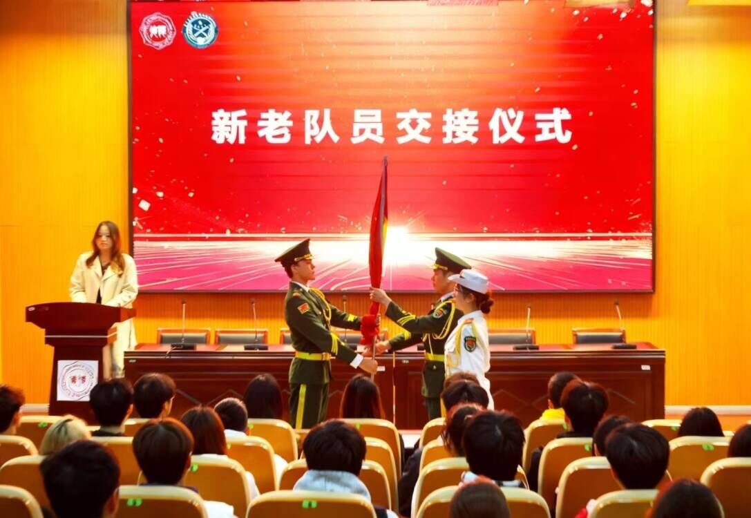 随后,国护新老队员举行了庄重的国旗交接仪式,刘婧娴为表现优异的老队员们颁发荣誉奖章并送上寄语,希望全体队员继续传承与发扬国旗护卫队的精神,用实际行动践行对国旗的庄严承诺。