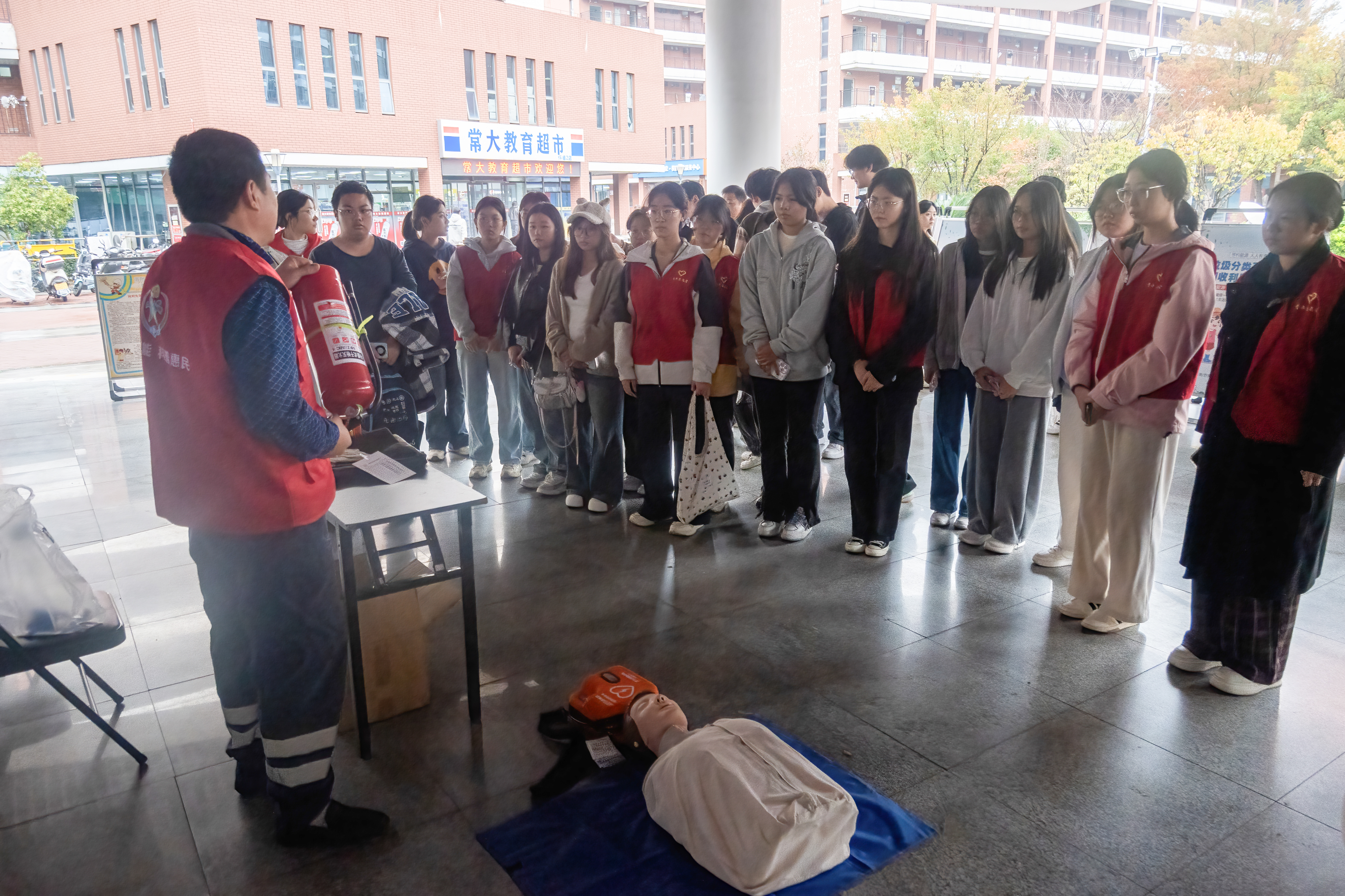 活动尾声,靖江市图书馆工作人员开展了安全知识讲解,现场演示了灭火器的规范使用方法,并详细介绍了紧急情况下的自救与互救技巧。通过模拟演示,工作人员重点强调了实际操作中需严格遵循流程,以保障在危急时刻能够迅速、有效地应对。