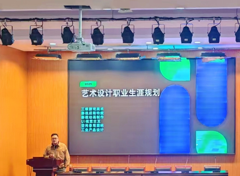 顾志殷以“技术赋能设计,规划引领未来”为主题,系统介绍了艺术设计领域的前沿发展与核心技能。他重点解析了UE5虚幻引擎应用、三维建模流程、影视后期特效制作及AIGC工具整合四大技术方向,并围绕学生职业发展提出“三维能力模型”,从技术纵深、行业洞察与职业策略三方面为学生提供系统性指导。