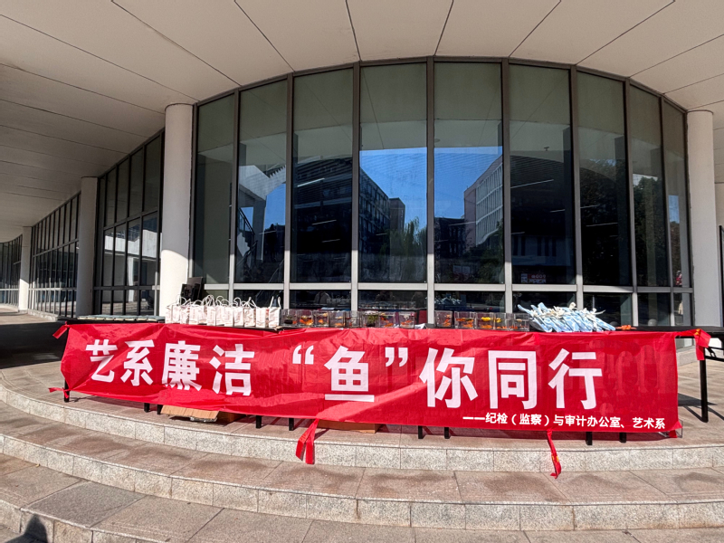 为深入推进校园廉洁文化建设,营造风清气正的育人环境,11月19日,由纪检(监察)与审计办公室主办、艺术系承办的“艺系廉洁,‘鱼’你同行”主题宣传教育活动在一食堂门口顺利开展。