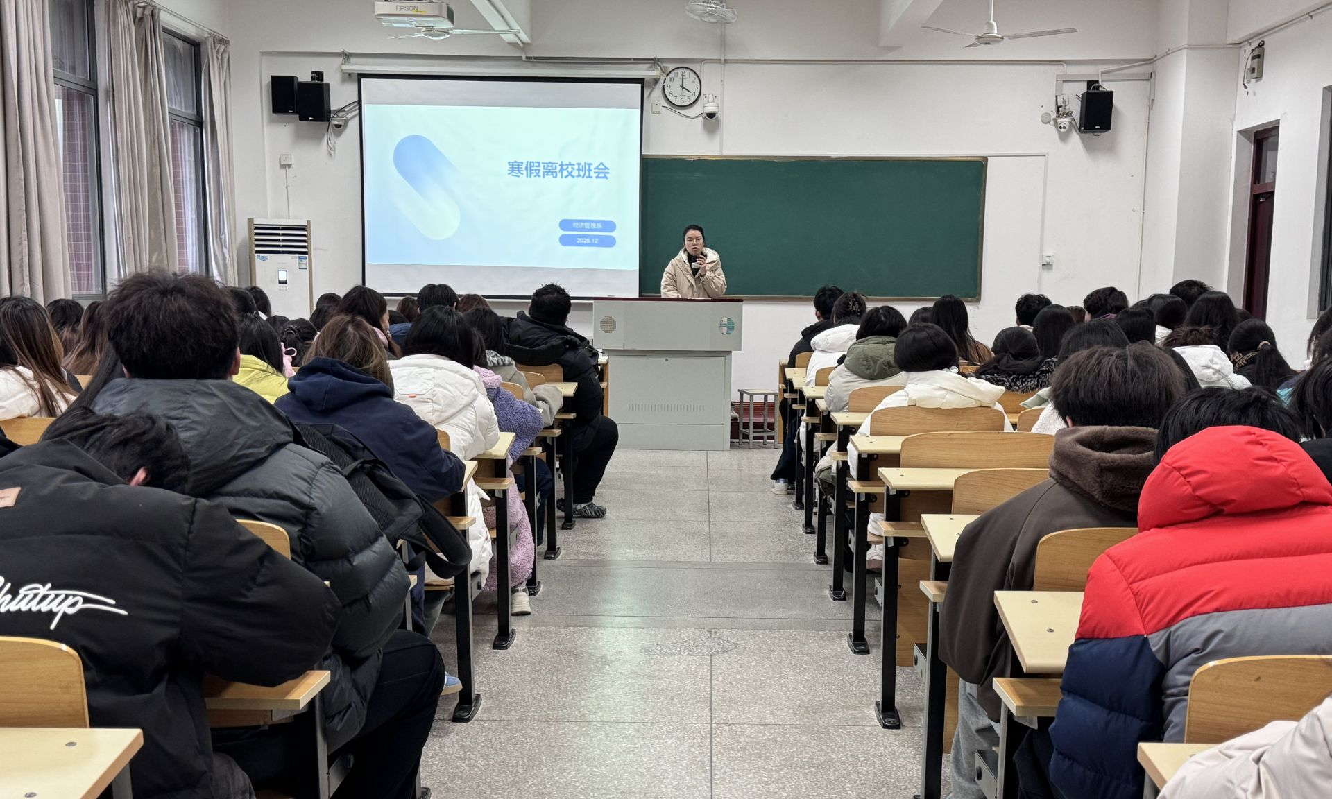 为严肃期末考风考纪,强化学生诚信意识,同时筑牢寒假安全防线。12月底,经济管理系各班班主任和辅导员于各班级召开期末诚信考试暨寒假安全离校班会,经管系学生积极参加。