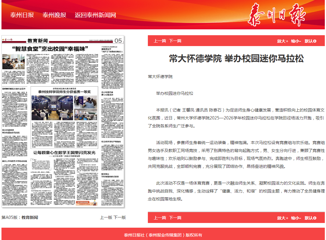 【泰州日报】常州大学怀德学院举办校园迷你马拉松