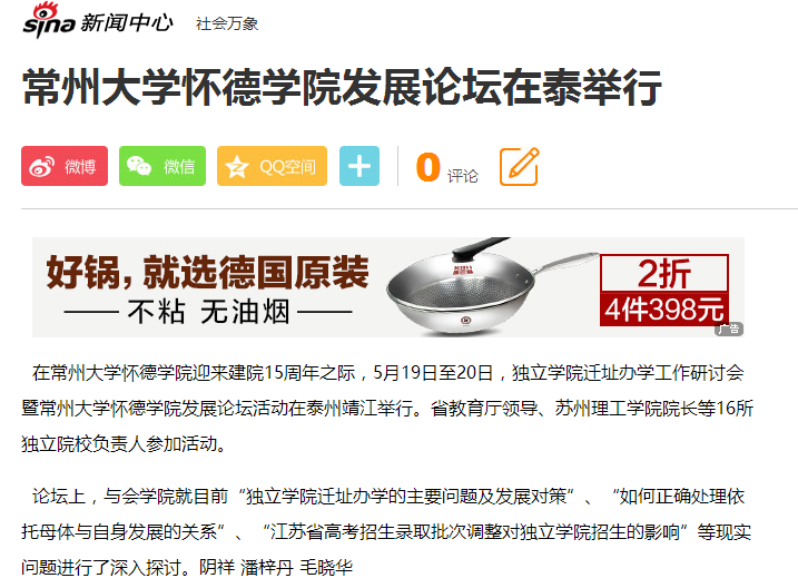 在常州大学怀德学院迎来建院15周年之际,5月19日至20日,独立学院迁址办学工作研讨会暨常州大学怀德学院发展论坛活动在泰州靖江举行。省教育厅领导、苏州理工学院院长等16所独立院校负责人参加活动。